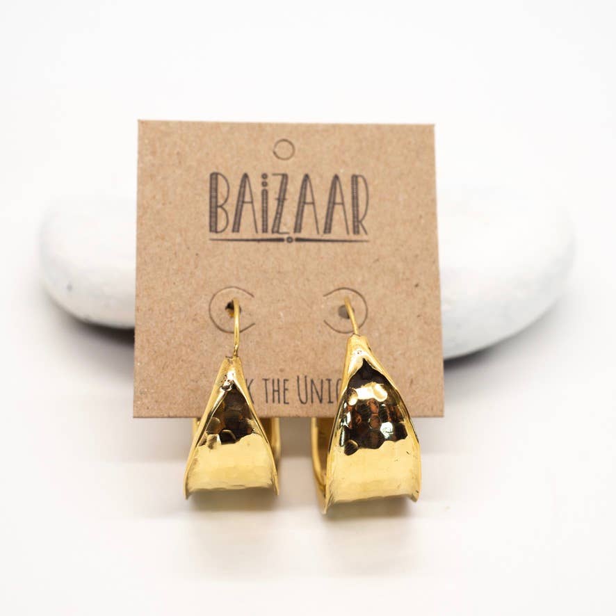 Discover the allure of the Brass Thick Hammered Hoop from Baizaar. These hoops are meticulously crafted by skilled artisans in India and Thailand, embodying a blend of traditional and innovative designs. Made from high-quality brass, these earrings offer a robust and stylish appeal. As part of Baizaar's fair trade practices, each purchase supports the artisans and their craft.