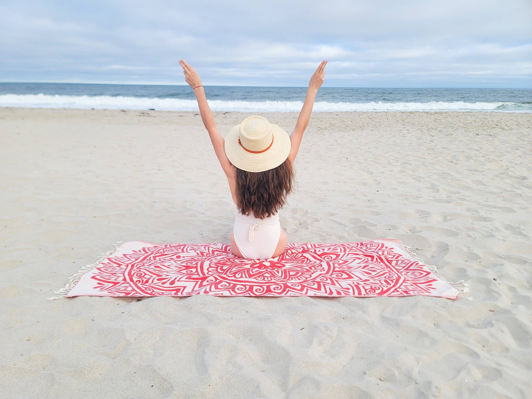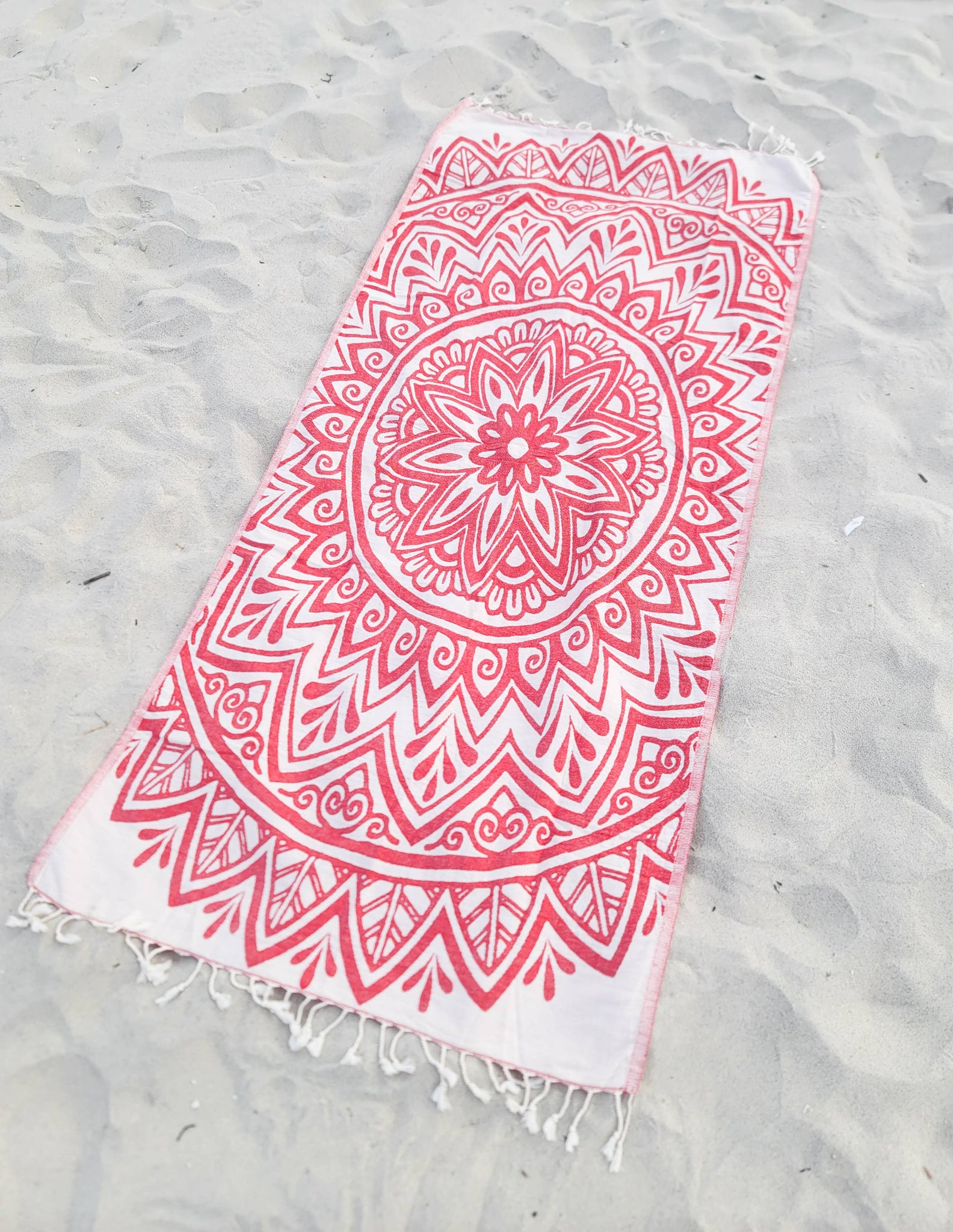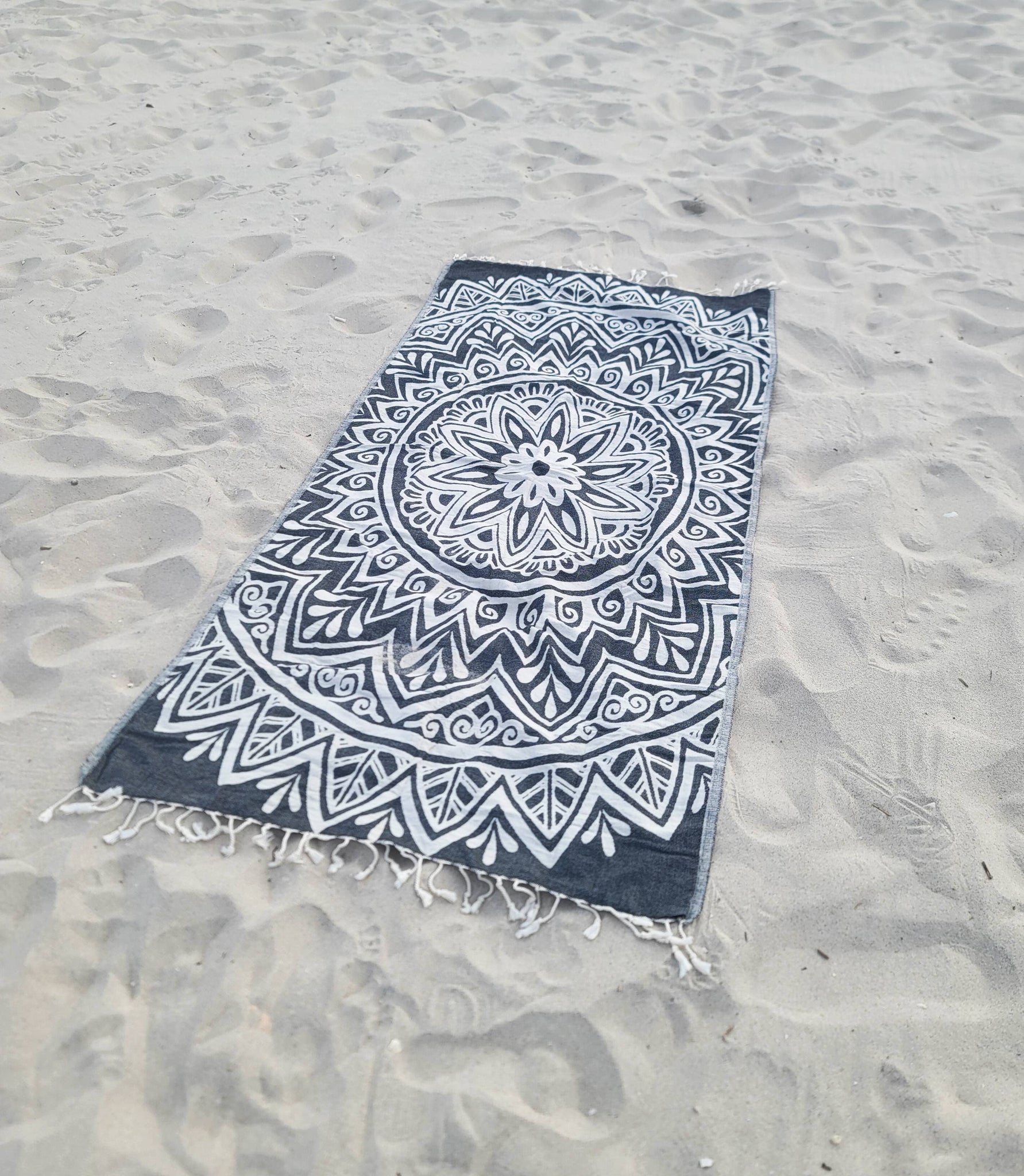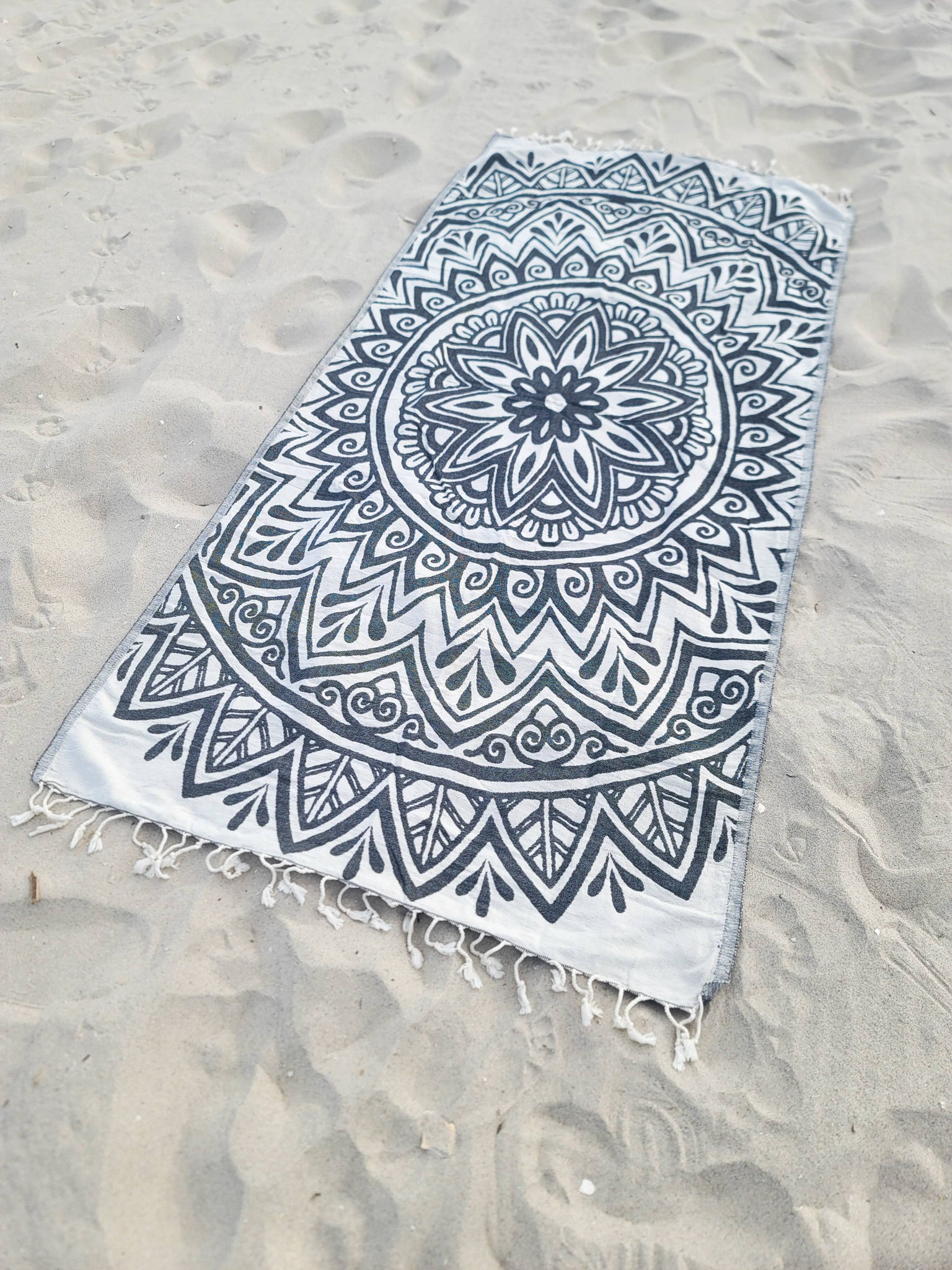Super versatile : This double sided Mandala design Turkish towel can be used as beach towel , beach blanket, pareo , shawl , wrap , pool towel , spa towel, yoga blanket , picnic blanket , decorative throw as well.